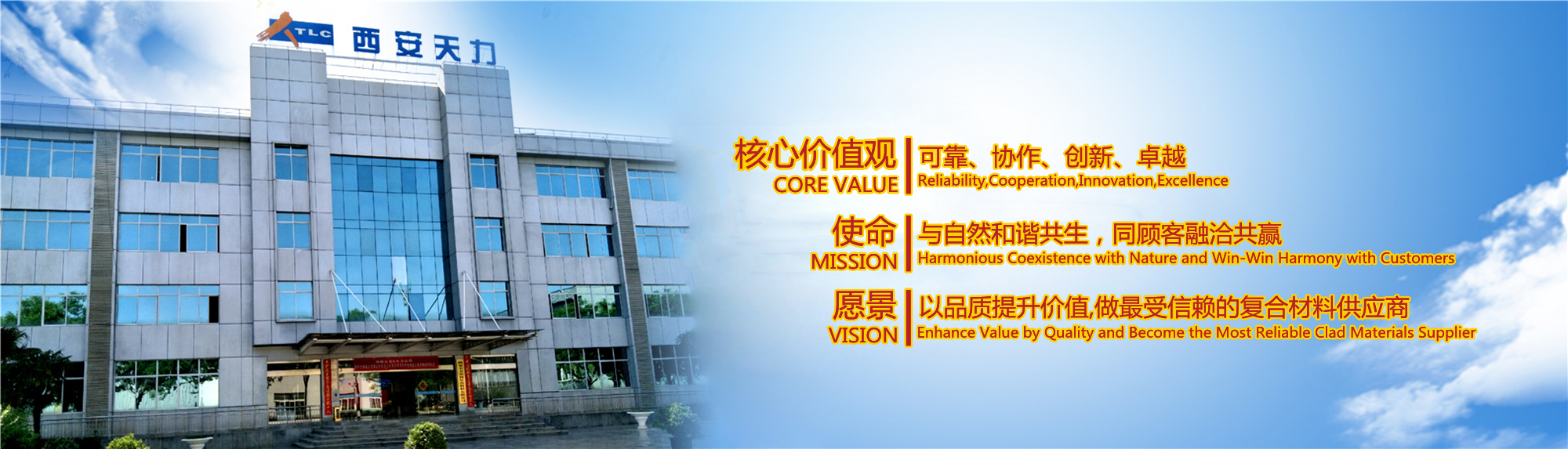 西安天力金屬復(fù)合材料股份有限公司是西北有色金屬研究院(集團(tuán))產(chǎn)業(yè)化上市公司“西部材料”控股的獨立法人公司,是專業(yè)從事層狀金屬復(fù)合材料研究及生產(chǎn)的高新技術(shù)企業(yè),成立于2003年12月25日,位于西安經(jīng)濟技術(shù)開發(fā)區(qū)涇渭工業(yè)園,注冊資本10895萬股,擁有生產(chǎn)廠房23000余平米,各類生產(chǎn)設(shè)備200余臺套及兩塊條件優(yōu)越的爆炸復(fù)合場地,形成年產(chǎn)25000噸層狀復(fù)合材料的生產(chǎn)加工能力……
